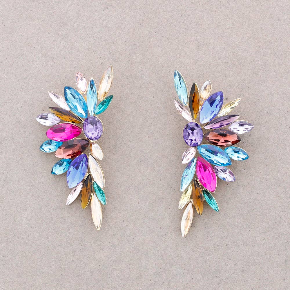 Envie de briller de mille feux ? Ces boucles d’oreilles en forme d’aile serties de cristaux étincelants apporteront une touche céleste et glamour à votre look. Leur design délicat épouse le lobe pour un effet spectaculaire, tout en restant légères et confortables à porter.