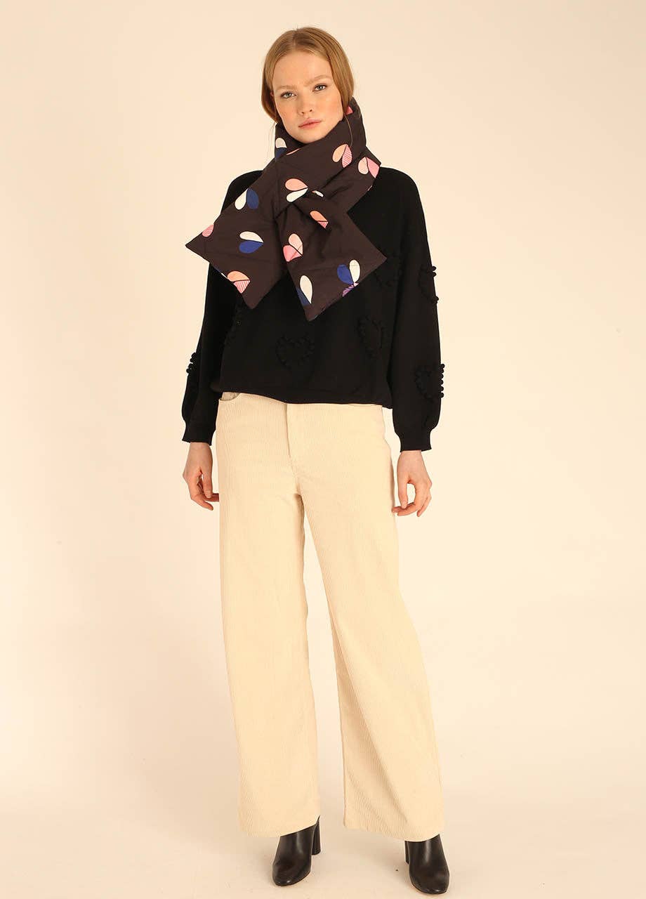 Polyvalente et pratique, cette écharpe complète parfaitement un manteau, une doudoune ou une veste légère, tout en ajoutant une touche fun et moderne à votre tenue.
