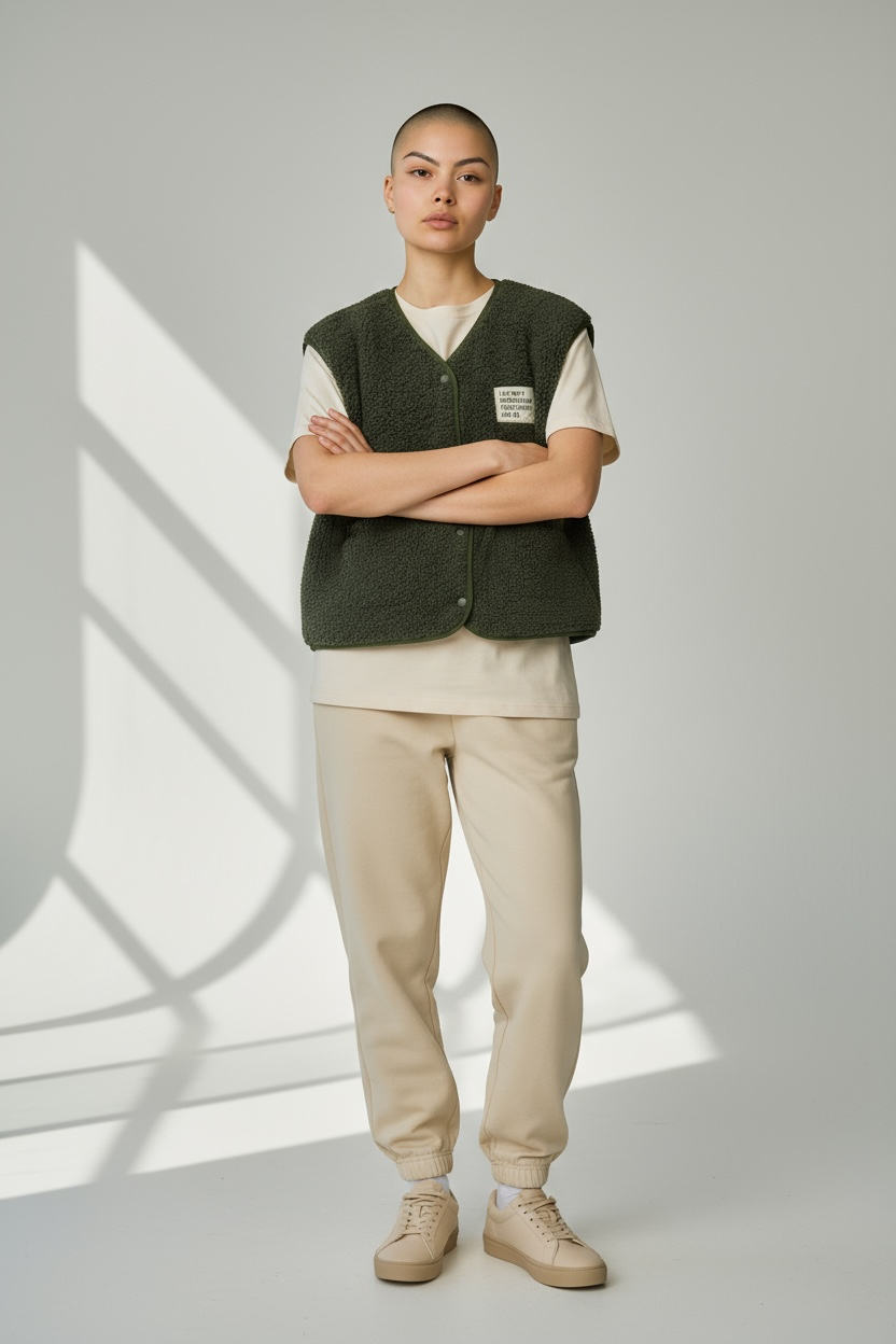 Douillet, tendance et facile à porter, ce gilet sans manches moumoute est l’allié parfait des looks décontractés.