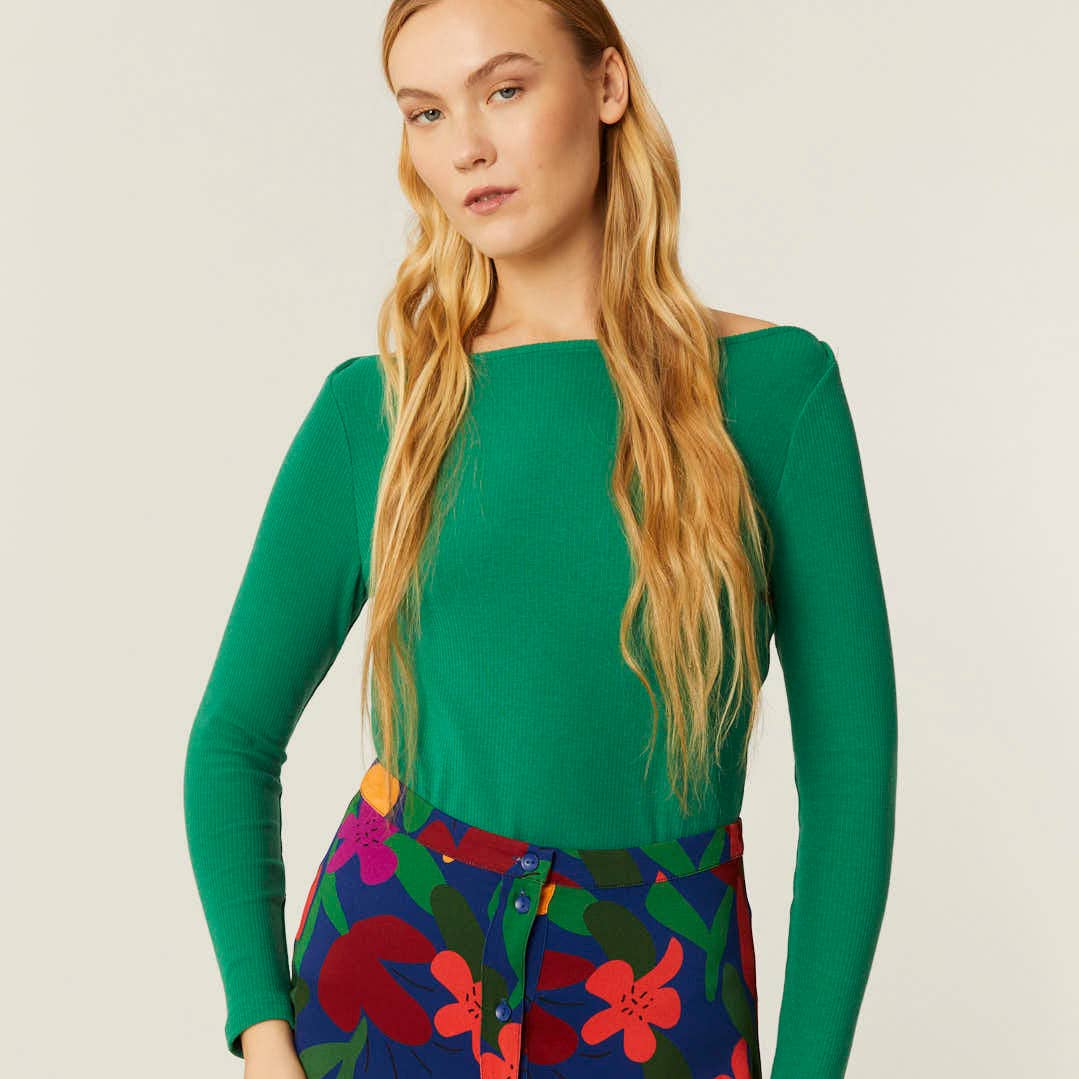 Découvrez l’alliance parfaite entre élégance et confort avec notre haut côtelé à col bateau. Sa texture douce et extensible offre un ajustement impeccable, tandis que le tissu côtelé ajoute une touche de style et de sophistication à votre silhouette.