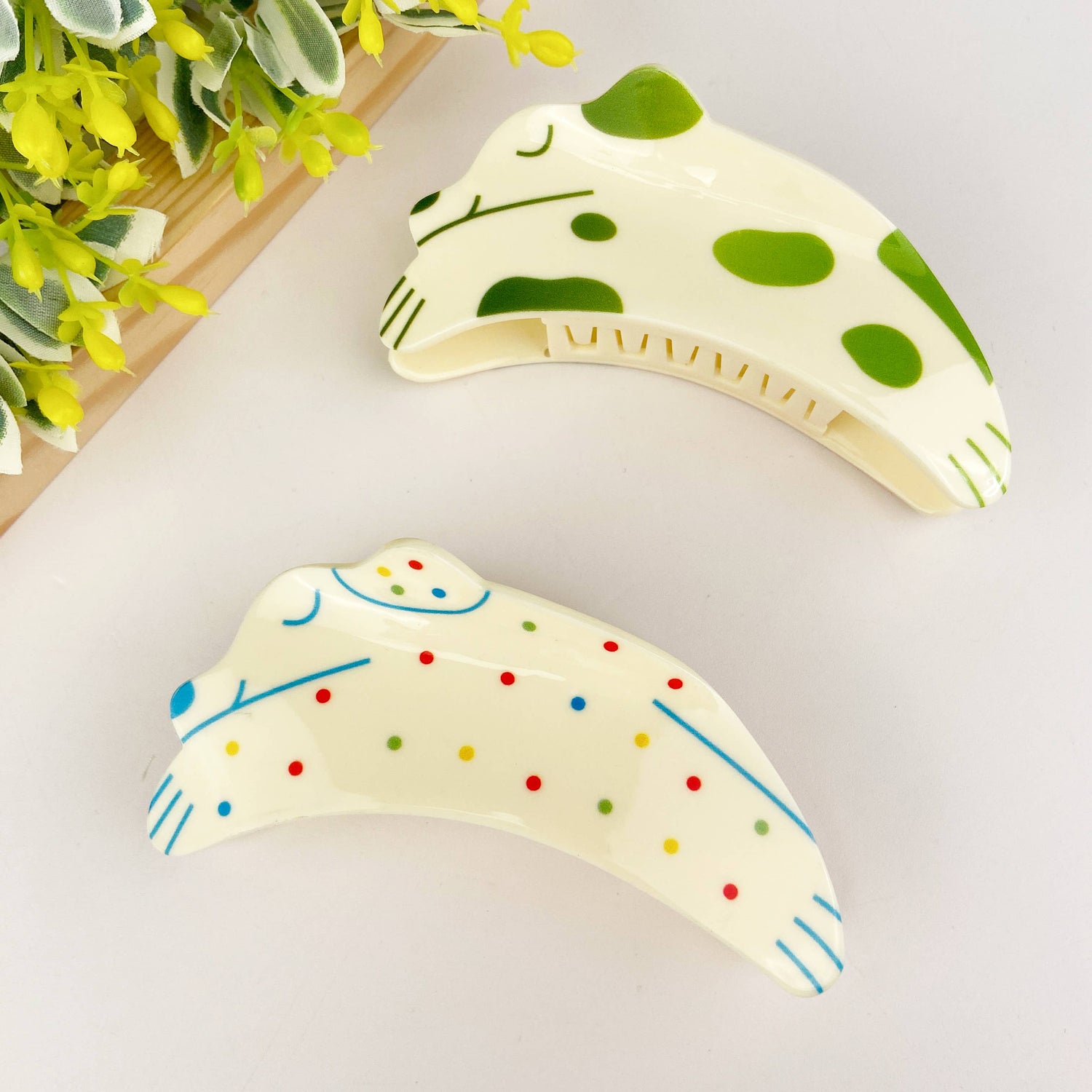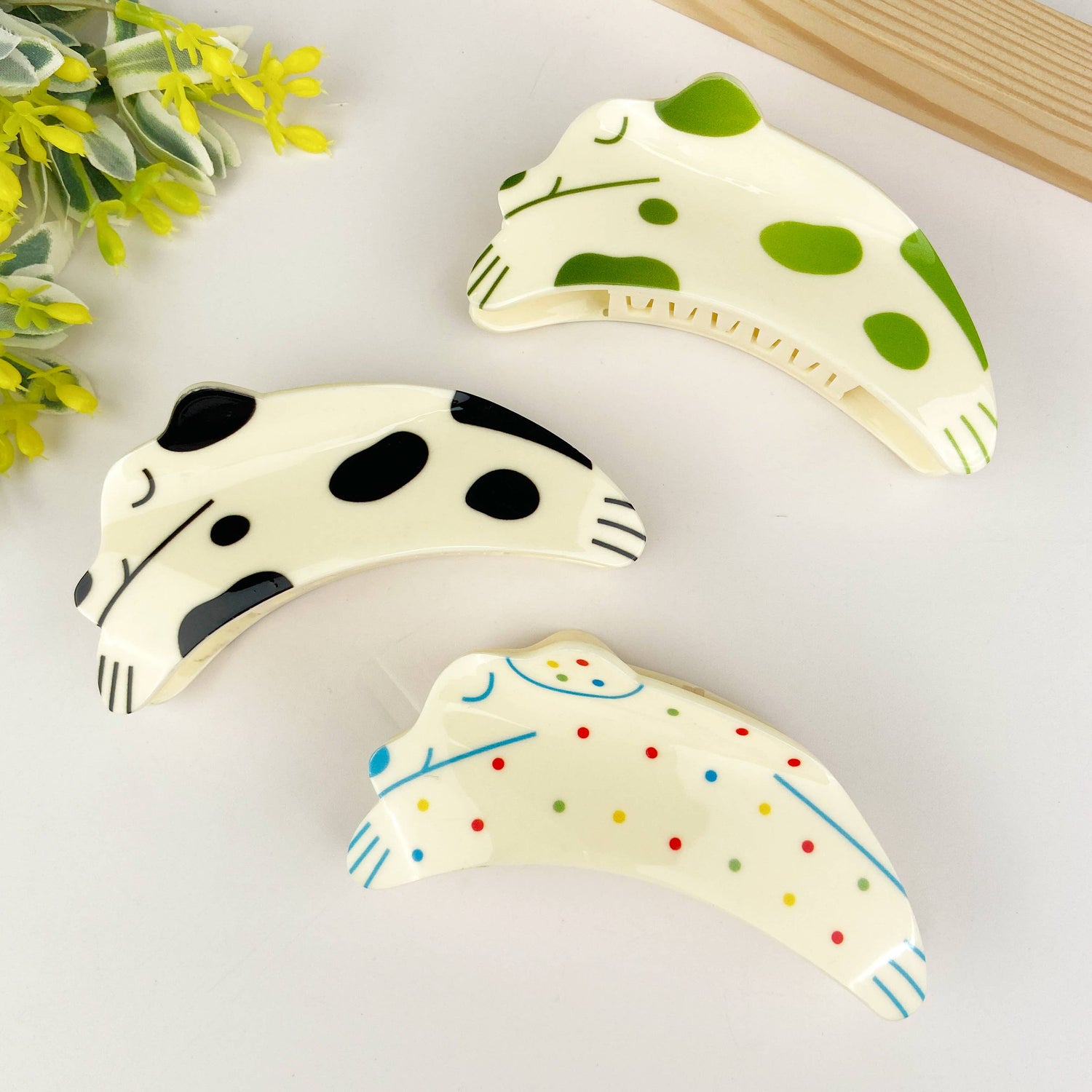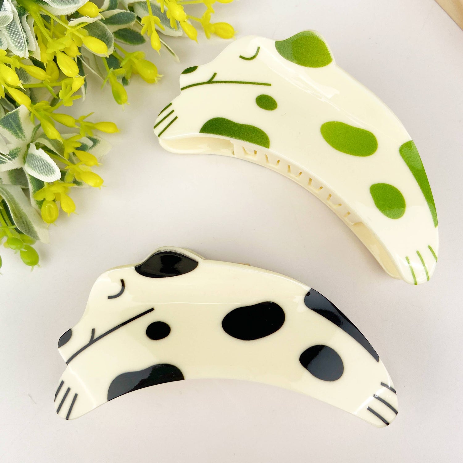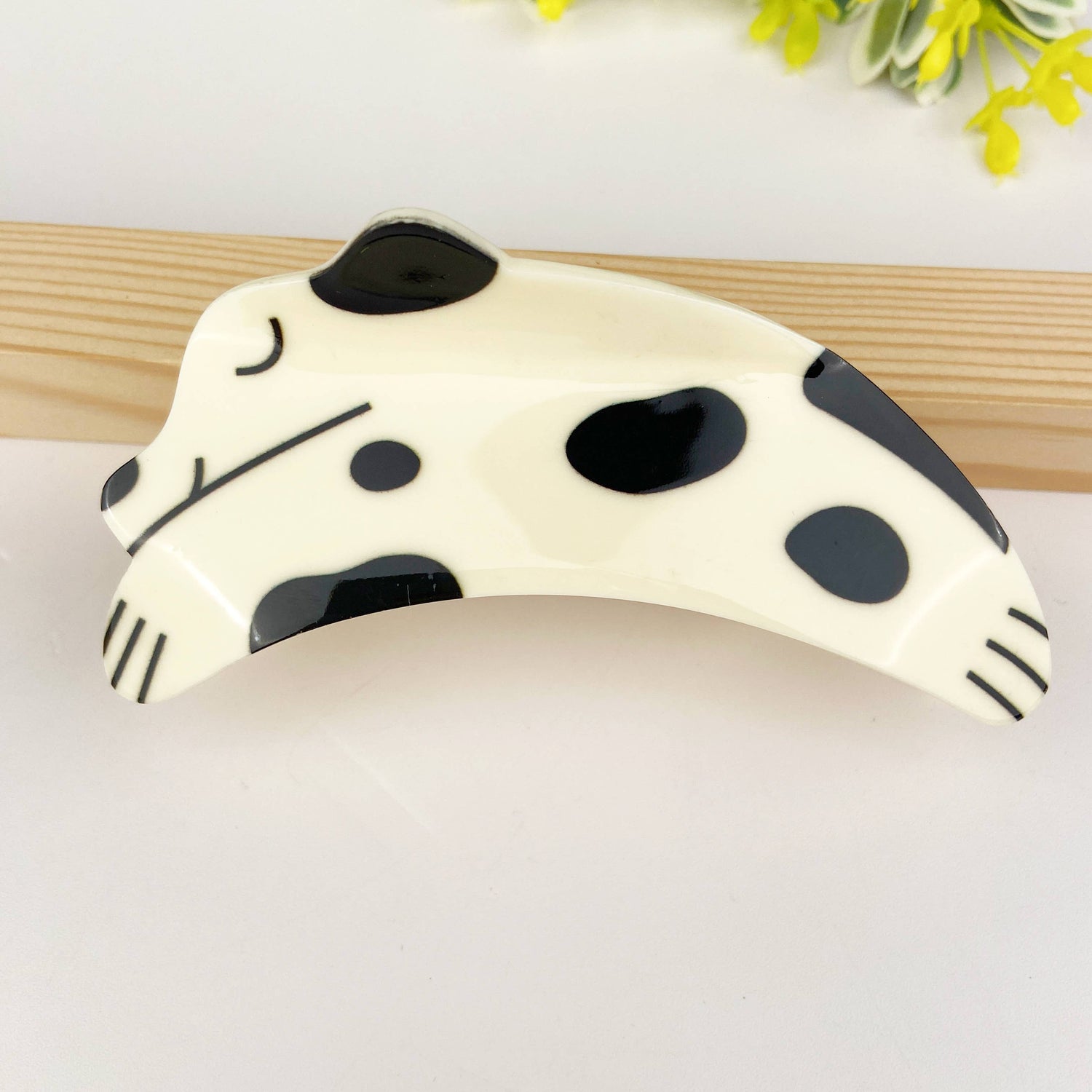 Le clip est généralement fabriqué à partir de matériaux durables tels que le plastique ou le métal pour garantir qu'il peut maintenir vos cheveux en toute sécurité. Le motif du chiot peut être fabriqué à partir de divers matériaux, tels que la résine ou l'émail, pour ajouter de la texture et de la couleur à l'accessoire.