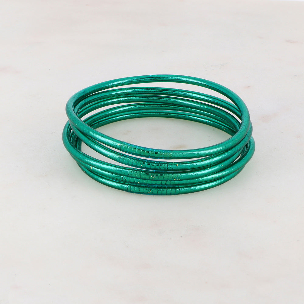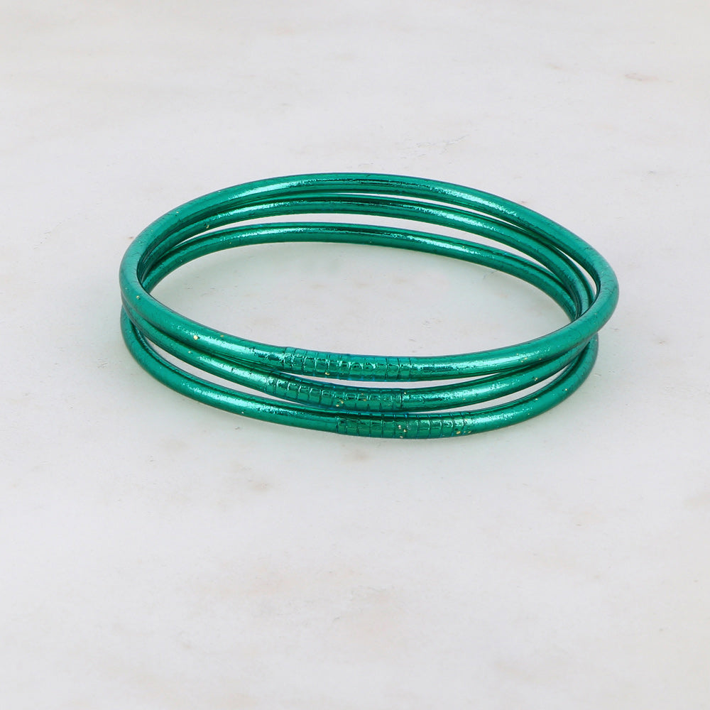 Ce jonc fin est fabriqué en plastique souple transparent, délicatement rempli de feuilles dorées décoratives. Sans mantra, il conserve toute la pureté et la force des bracelets traditionnels asiatiques.