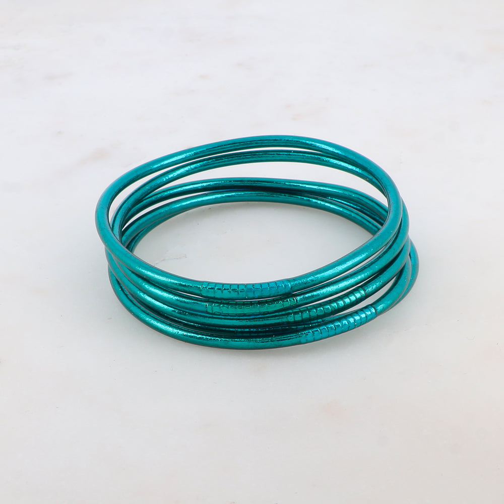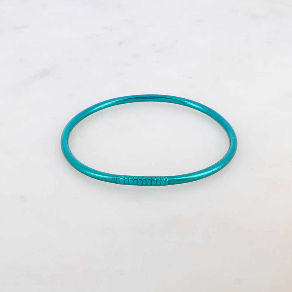 Ce jonc fin est fabriqué en plastique souple transparent, délicatement rempli de feuilles dorées décoratives. Sans mantra, il conserve toute la pureté et la force des bracelets traditionnels asiatiques.