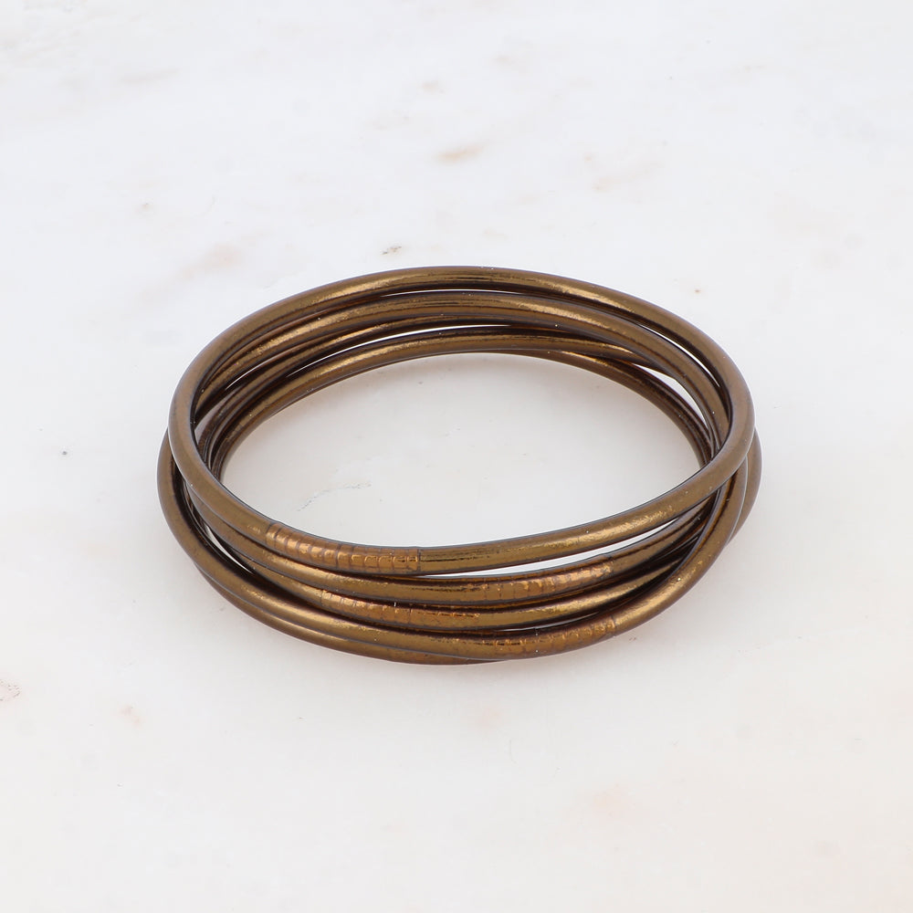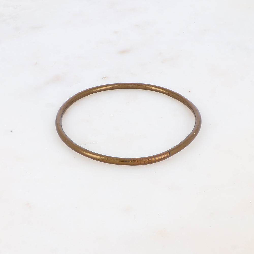 Ce jonc fin est fabriqué en plastique souple transparent, délicatement rempli de feuilles dorées décoratives. Sans mantra, il conserve toute la pureté et la force des bracelets traditionnels asiatiques.