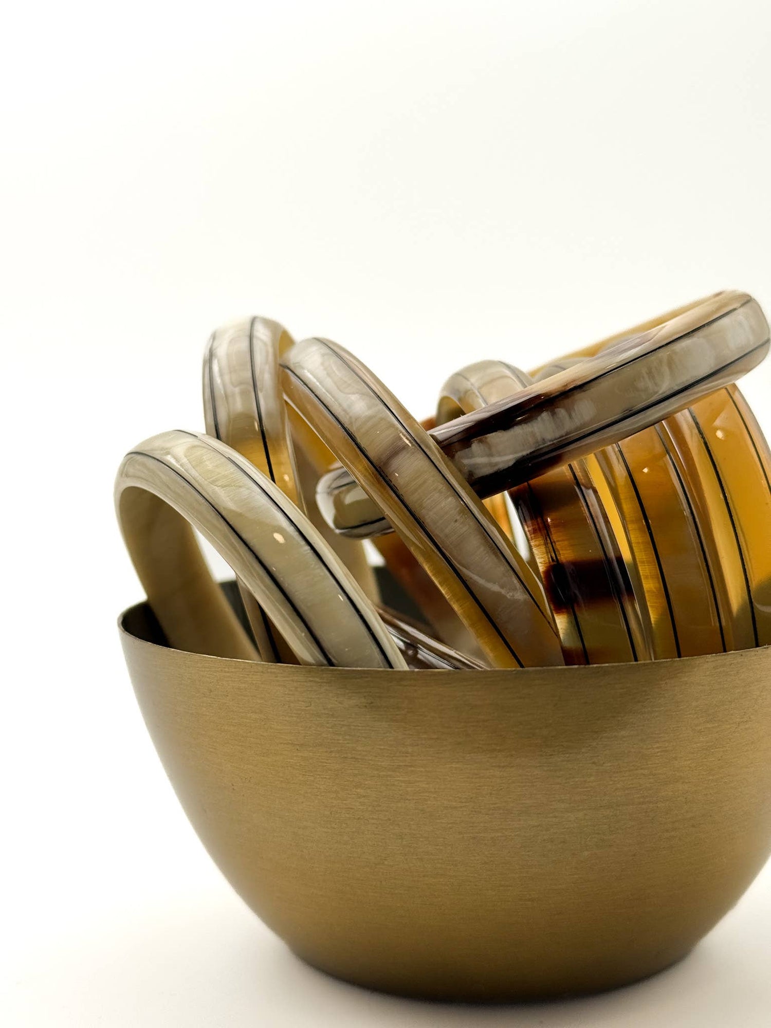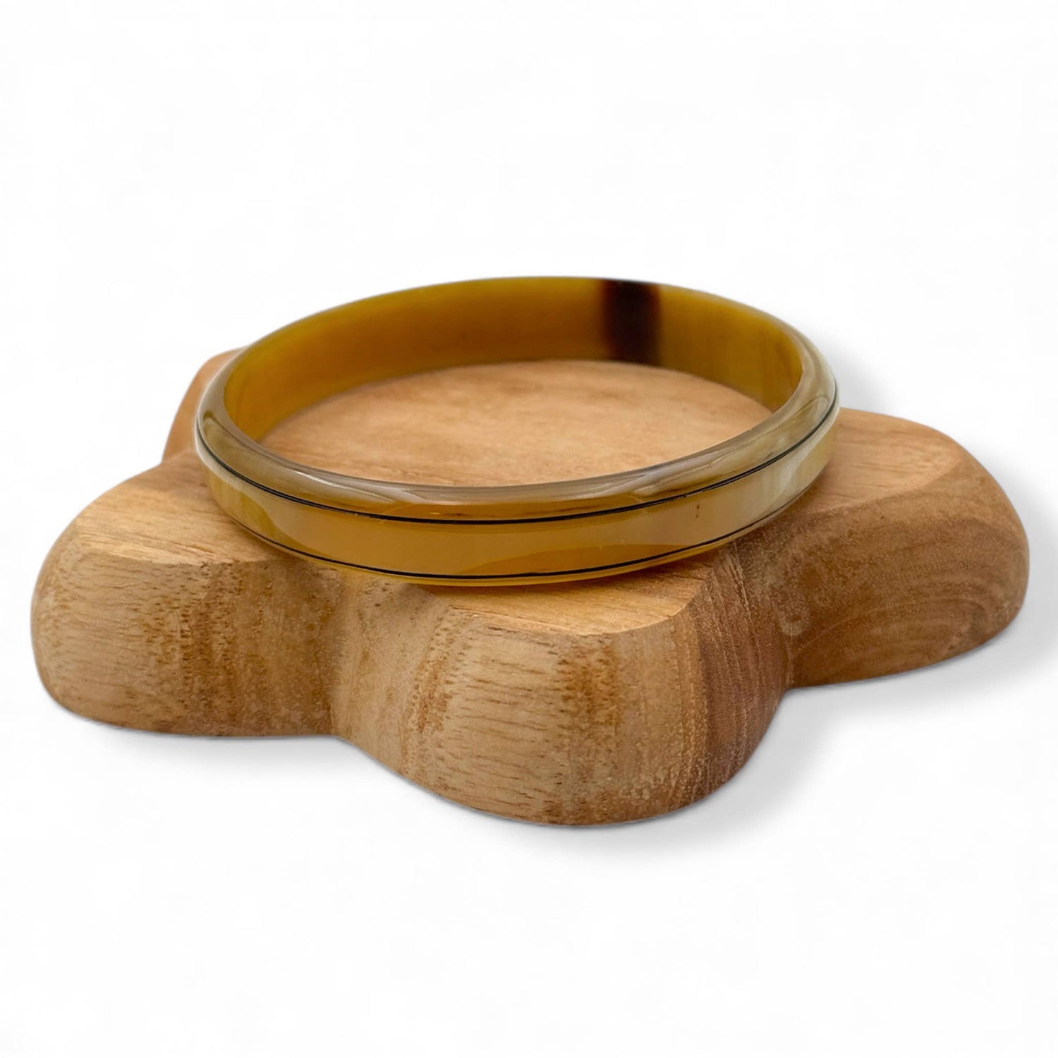 Chaque jonc est une pièce unique, façonnée artisanalement à partir de corne de buffle et recouverte d'une laque séchée naturellement.
