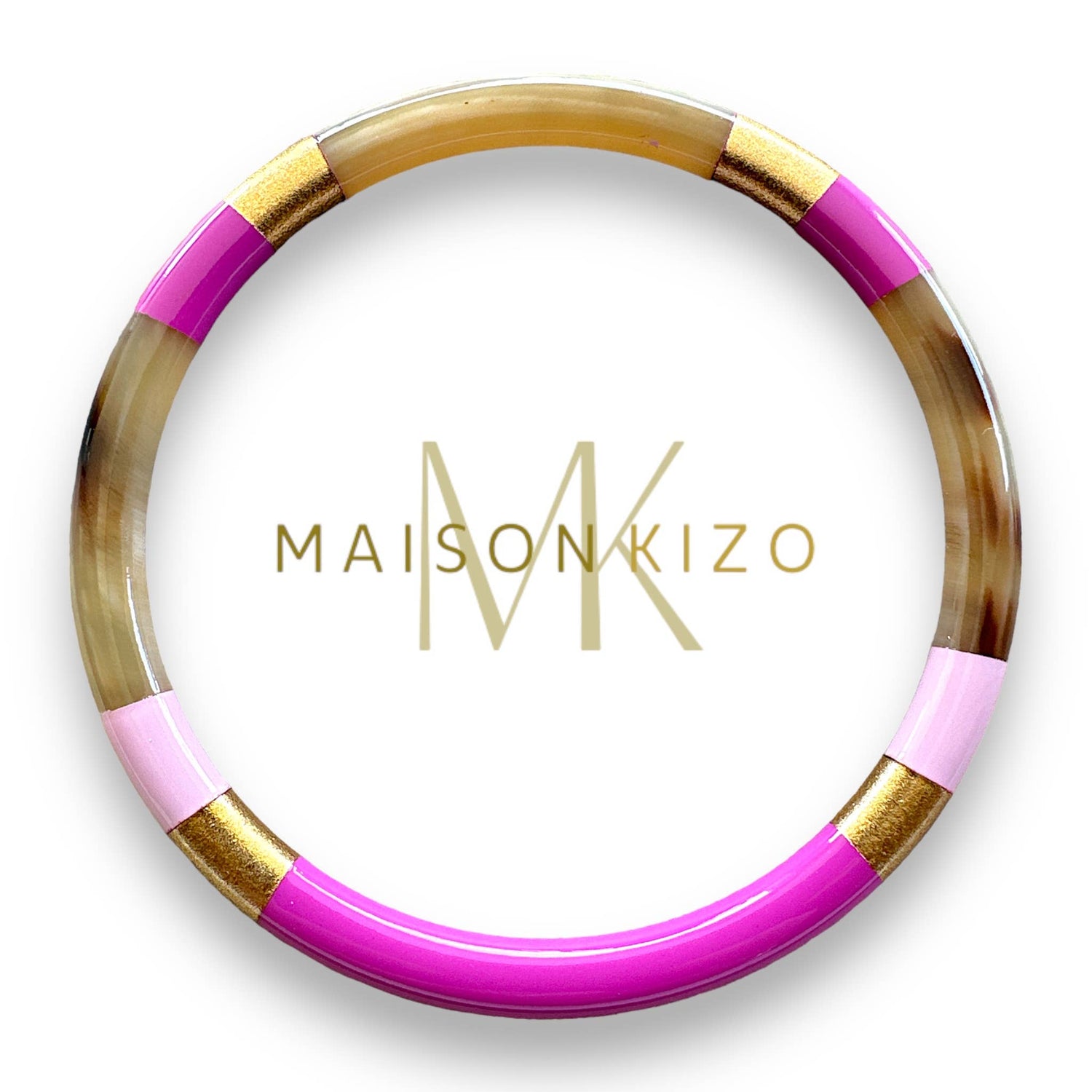 Jonc laqué en corne de buffle Fushia, Rose et Doré