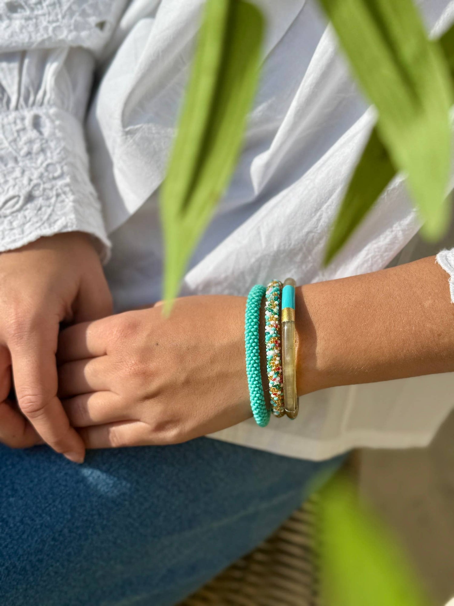 Jonc laqué en corne de buffle Multicolore Turquoise