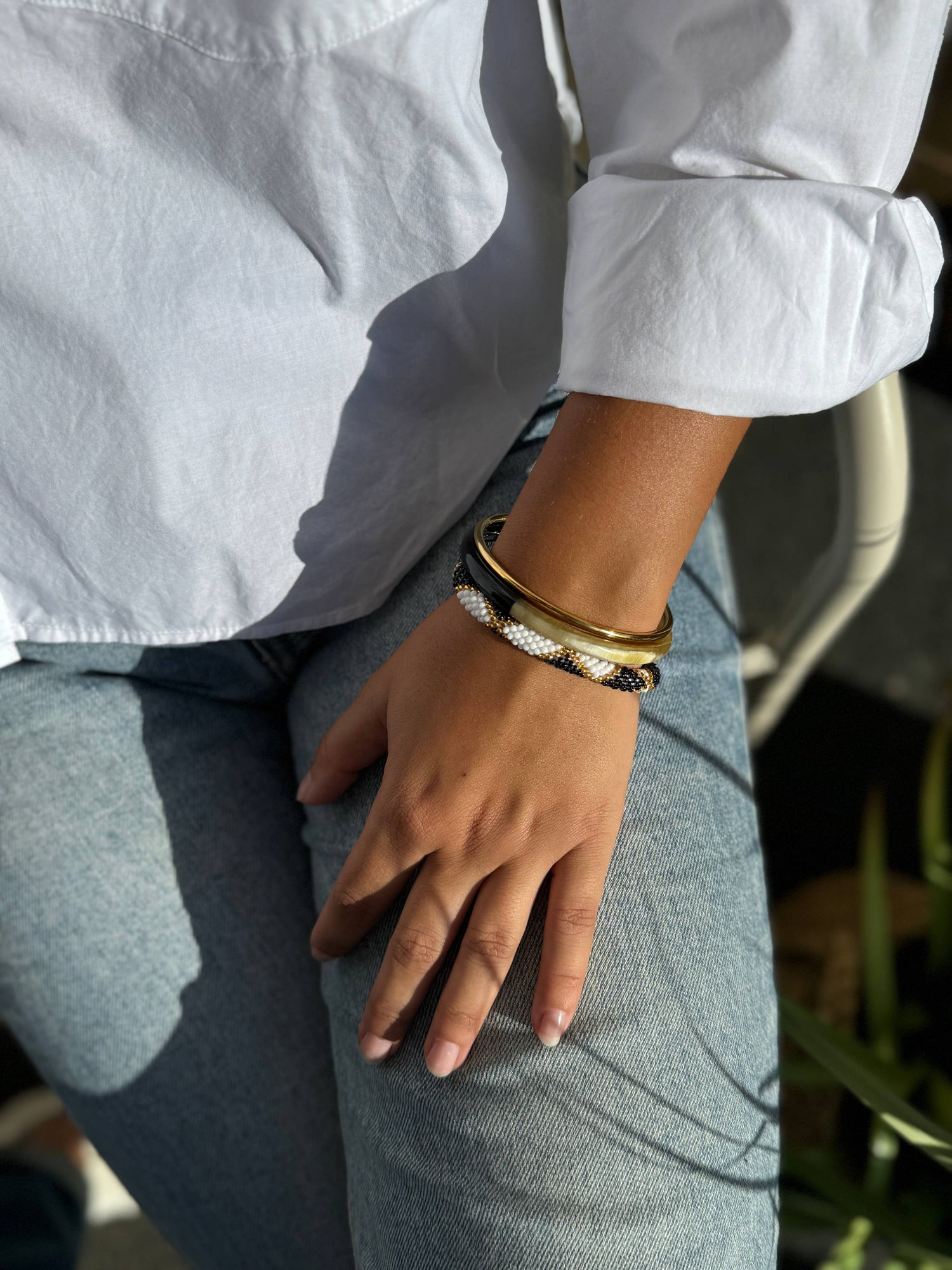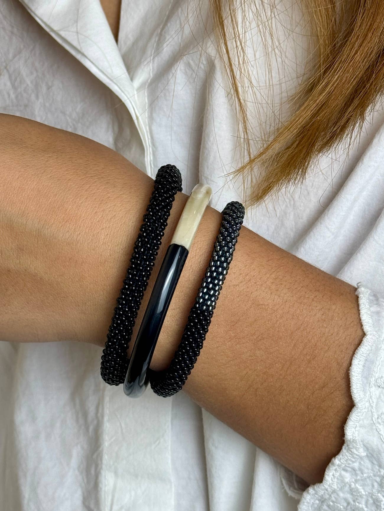 Chaque jonc est une pièce unique, façonnée à la main à partir de corne de buffle naturelle et recouverte d’une laque séchée naturellement, selon un savoir-faire artisanal vietnamien transmis de génération en génération.