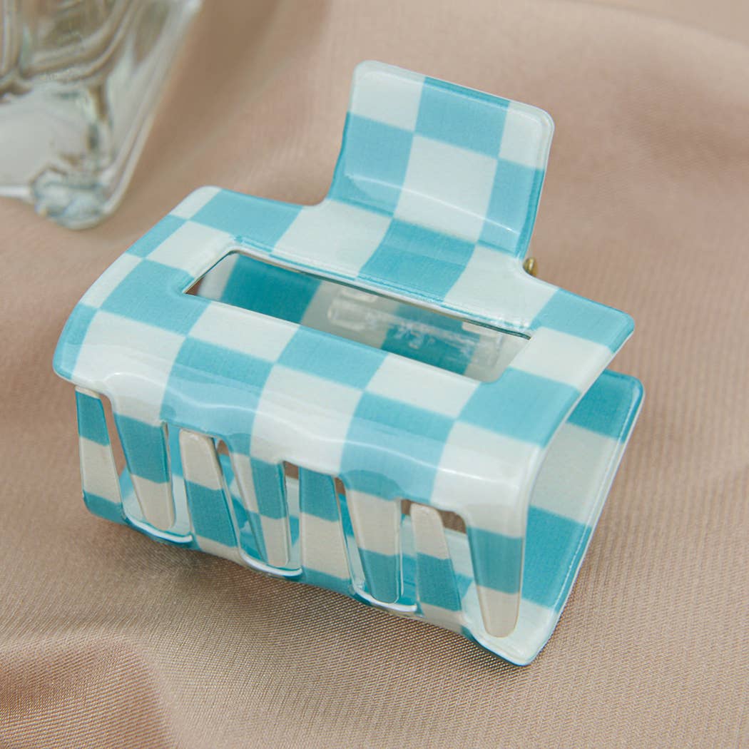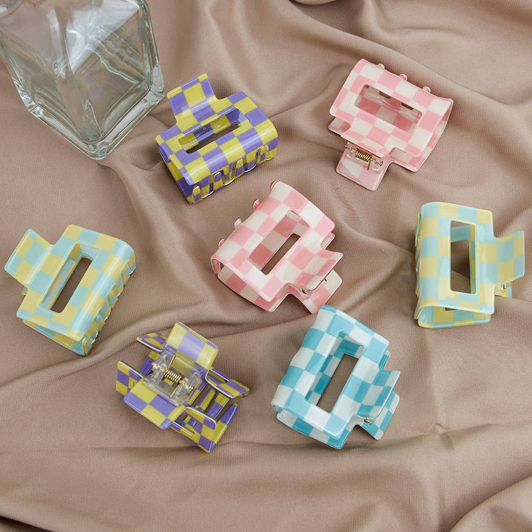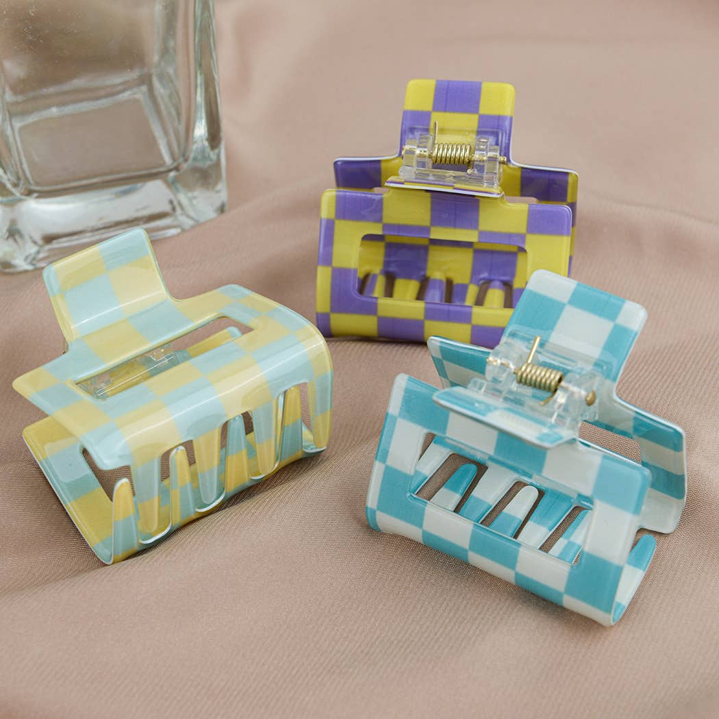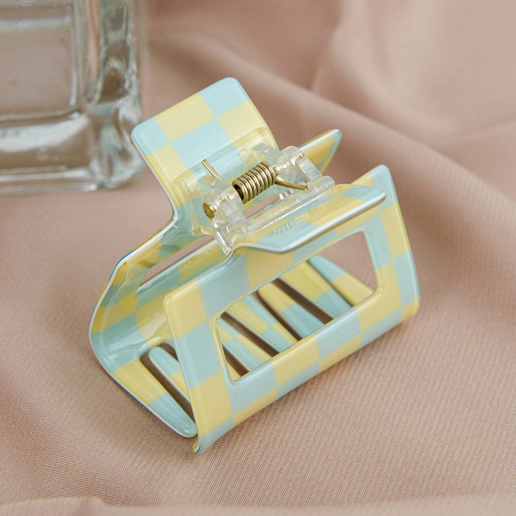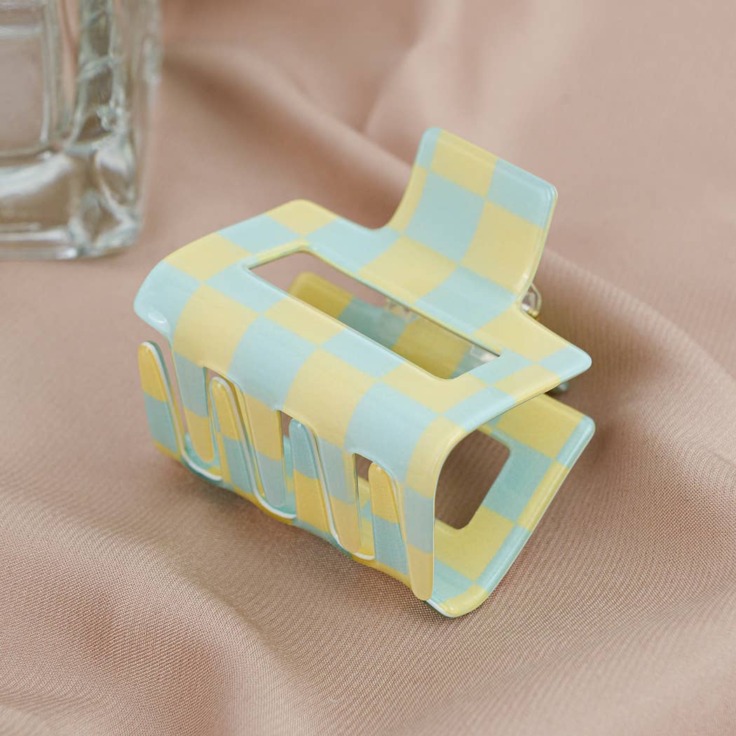 Apportez une touche moderne et colorée à vos coiffures avec cette pince à cheveux carrée en damier, aux teintes vives bleu et jaune. De taille moyenne, elle est idéale pour maintenir vos mèches avec élégance et originalité.