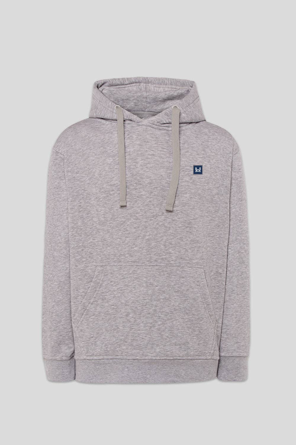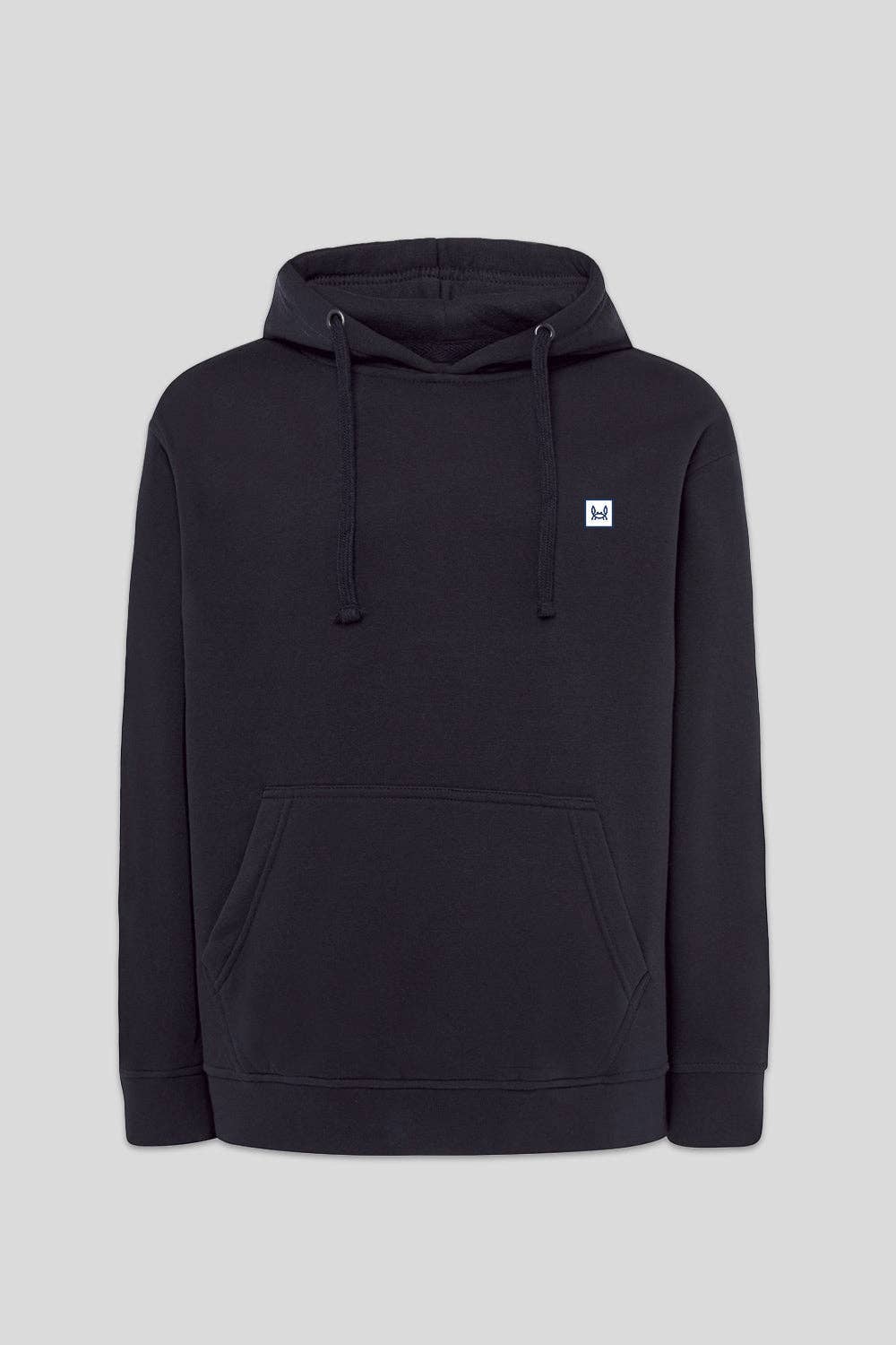 Sweat à capuche rouge, avec poche kangourou et cordon de serrage assorti.