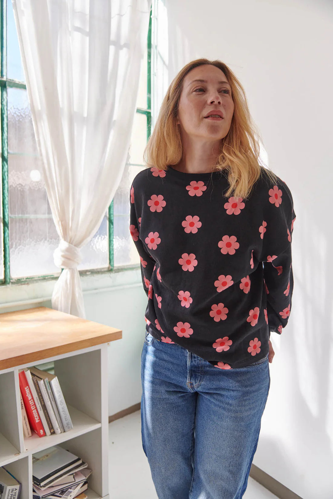 100% coton BIO fluide et confortable il allie style rétro et modernité. Épaules tombantes pour un look décontracté, imprimé délicieusement old-school.